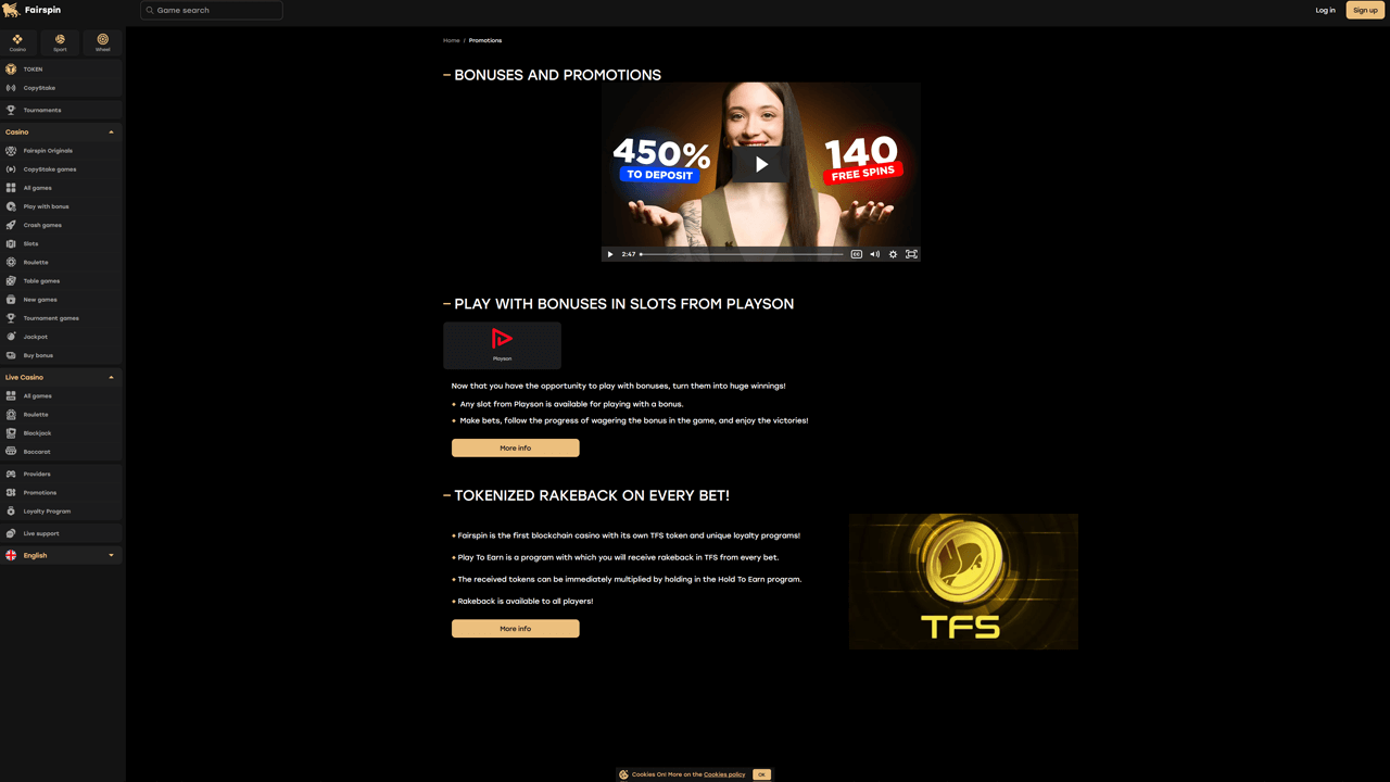 Bonuses Available in the Fairspin Casino